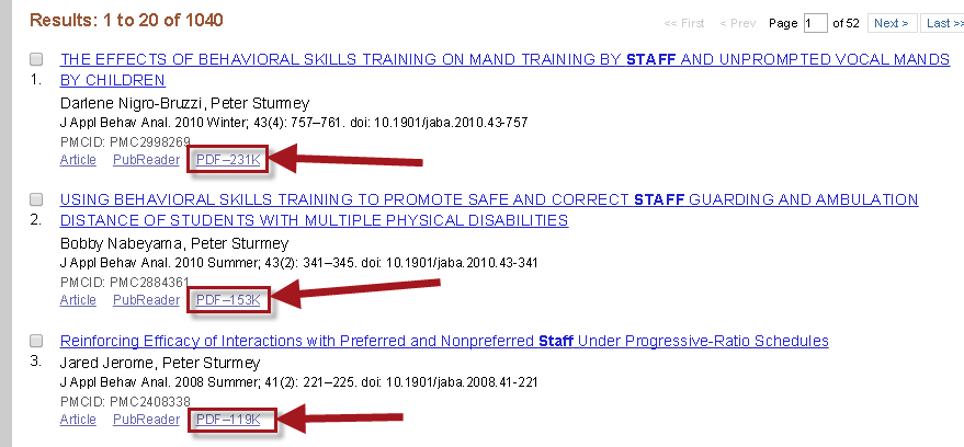 The very first item in the results list is a link to the Journal of Applied Behavior Analysis. The search box just below the title of the journal can be used to search just that journal. Type your search words into that search box. pThe results screen will now only show articles from that journal.